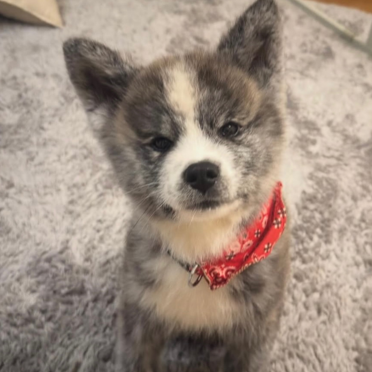 who is constantly posting photos of an Akita Inu puppy named Koto, always wearing the same red scarf.